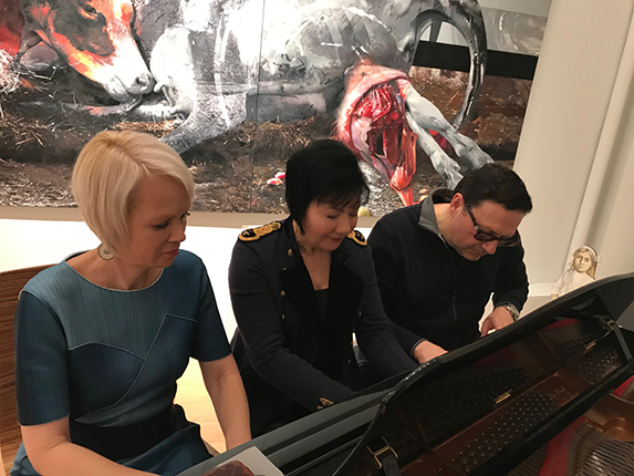 The gallery enjoys presenting the most highly regarded musical talents, and in 2018 there were recitals by renowned Lenny Bord piano trio - Masha Tyshkov and Marina Bord along with Mr. Bord himself - which performed for the guests their classical repertoire, while the Bravura trio, featuring Andrew Grossbard, entertained with selection of Broadway shows’ masterpieces, and Eva Garcia Novoa, a jazz composer and pianist, performed several of her own works from her newly released album. As usual, at the private events, chefs from different companies dazzle the guests with their finest examples of international cuisine! Sitting amid works by some of most promising and celebrated contemporary artists takes wining and dining to another level.