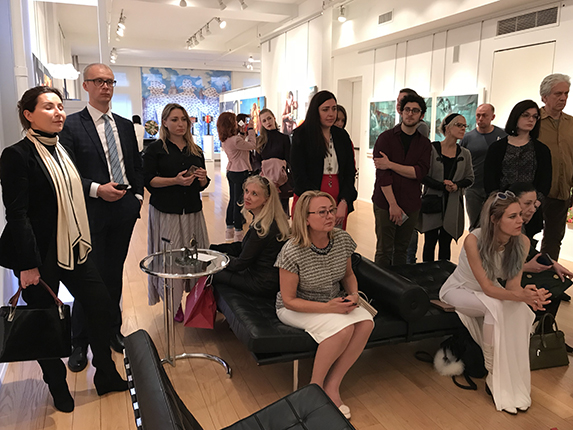 The gallery hosted a symposium celebrating creativity of Mykola Babak and Evgene Matveev, with participation of the duo and Prof. Donald Kuspit, one of America's most respected art historians and art critics. It is rare that two accomplished artists, who previously had received all possible national honors and international recognition as individuals, decide to join forces combining their ideas and artistic expressions. What are the roots of BM Babak-Matveev? One must look to Gorbachev’s Perestroika and the transformation of the Soviet Union in the second half of the 1980s which culminated in Ukrainian independence in 1991. The resulting new social and political order unleashed a variety of philosophies and individual freedoms, some of which showed up in artists’ paintings and other art forms. Fast forward to the tumultuous events of 2013 - 2014 in Kyiv: The Ukrainian revolution, known as Euromaidan spurred the creation of Babak-Matveev. The artists unite around the belief that only through Ukrainian identity, through modern transformation and the modernization of Ukrainian artistic thought and through the integration of the national philosophy into an international process can a path be paved for their country’s future. The creativity of Babak-Matveev stretches across multiple disciplines and involves work in different media, book design, literature, poetry and philosophical conceptualizations. As Donald Kuspit wrote in Whitehot magazine, “Babak-Matveev ‘Family Album’ (‘Transgression of a Double Reflection’) is dialectically absurd digital masterpiece.”